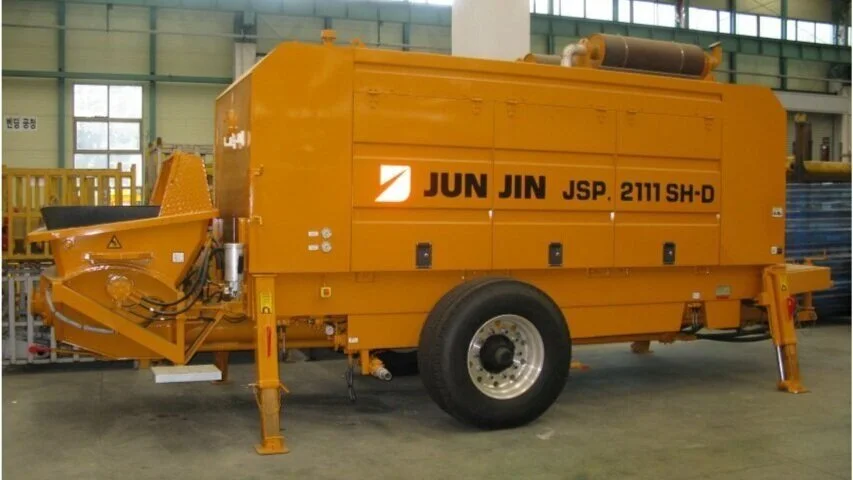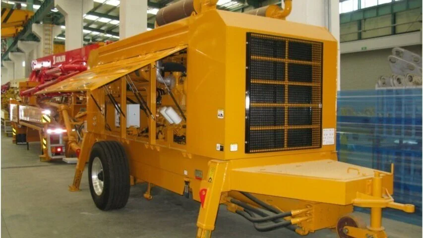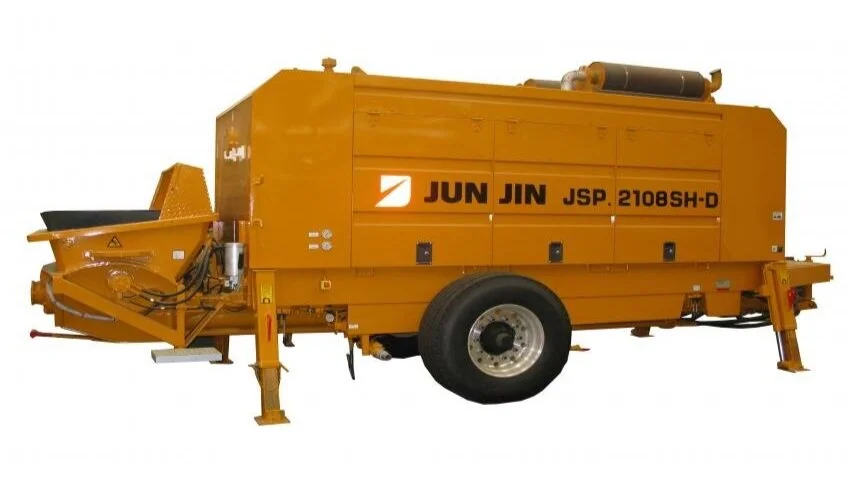 Tilhengermontert “on-road” 15m3/time betongpumpe med 2 matesylindere. S-rør og variabel output for pumpning av betong, microcement og sprutbetong.